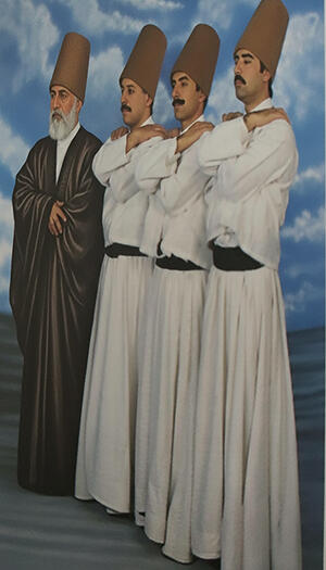 The fourth part is the Sultan Veled Cycle. In this section, the whirling dervishes greet one another three times and perform a circular walk accompanied by a peşrev (an instrumental prelude). This movement is understood as the hidden soul greeting the soul.