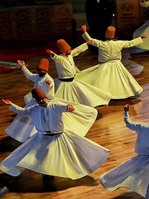 Sema is a part of Turkish history, tradition, and faith, formed and developed through the inspiration of Hz. Mevlana (1207–1273). It represents a spiritual journey toward perfection (Mi‘raj), a path of going and returning. Sema consists of seven sections, each with its own meaning.From a scientific perspective, we see that the fundamental condition of existence is rotation. The common similarity among beings—from the smallest particle to the most distant star—lies in the rotations within the atoms that form their structure, in the circulation of blood within the body, in the cycle of coming from the earth and returning to it, and in turning together with the world. All rotate naturally and unconsciously. Yet what distinguishes and elevates human beings above other creatures is reason. Thus, the whirling dervish joins the common movement of existence with the intellect through Sema.Sema is the servant’s turning toward truth, ascending with reason and love, abandoning the self, dissolving in God, and returning once more to servanthood as a mature, perfected human being.It is a return to all existence, to all creation, with a new spirit—for love, for service. By removing his cloak, the dervish is reborn spiritually into the eternal realm of truth and advances upon that path. His tall felt hat (sikke) is the tombstone of his ego, and his white robe (tennure) is its shroud. Crossing his arms upon his chest, he outwardly represents the numeral “one,” thereby affirming the unity of God.While whirling, his arms are open: the right hand raised toward the heavens in supplication, the left hand turned toward the earth, symbolizing the transmission of divine grace to humanity. Turning from right to left around the heart, he embraces all people, all creation, with love and passion.